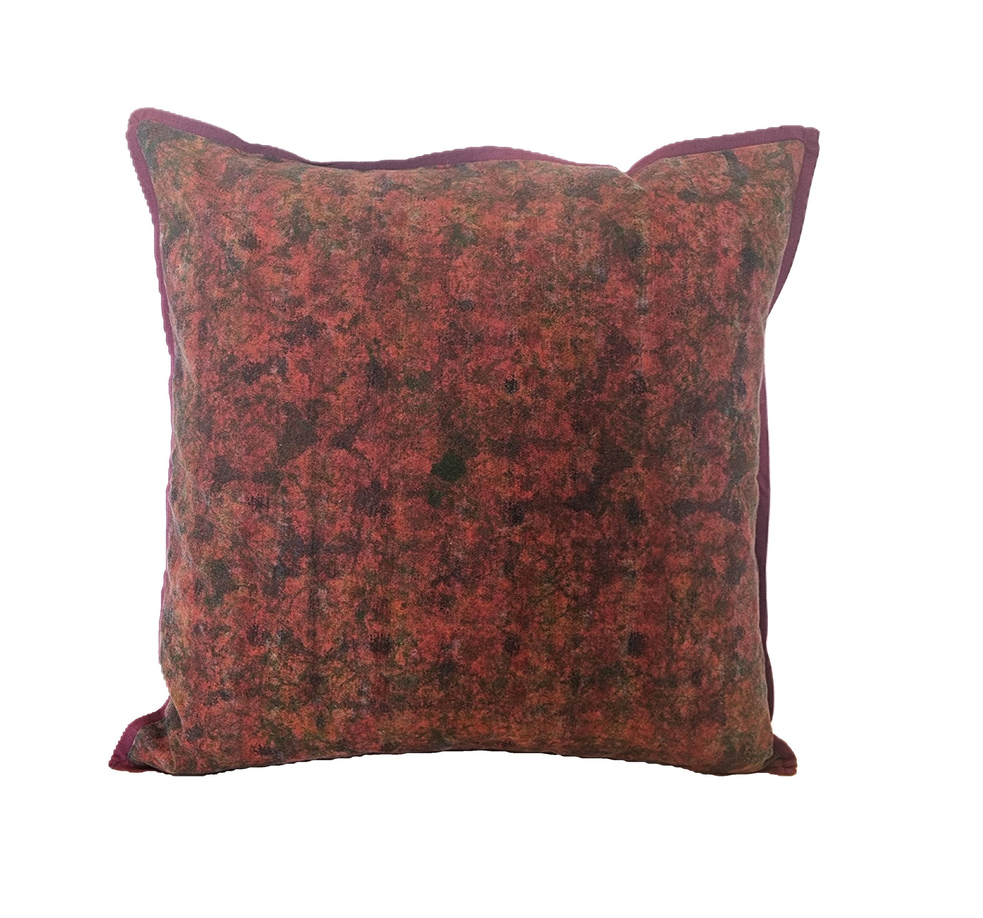 Crafted from 100% cotton, each cushion front reveals the rich textures and tonal layers built up through years of traditional printmaking. The reverse is made from a soft 45% cotton, 55% linen blend, dyed Azo-free in a deep Damson shade that enhances the design while adding a refined, moody finish.