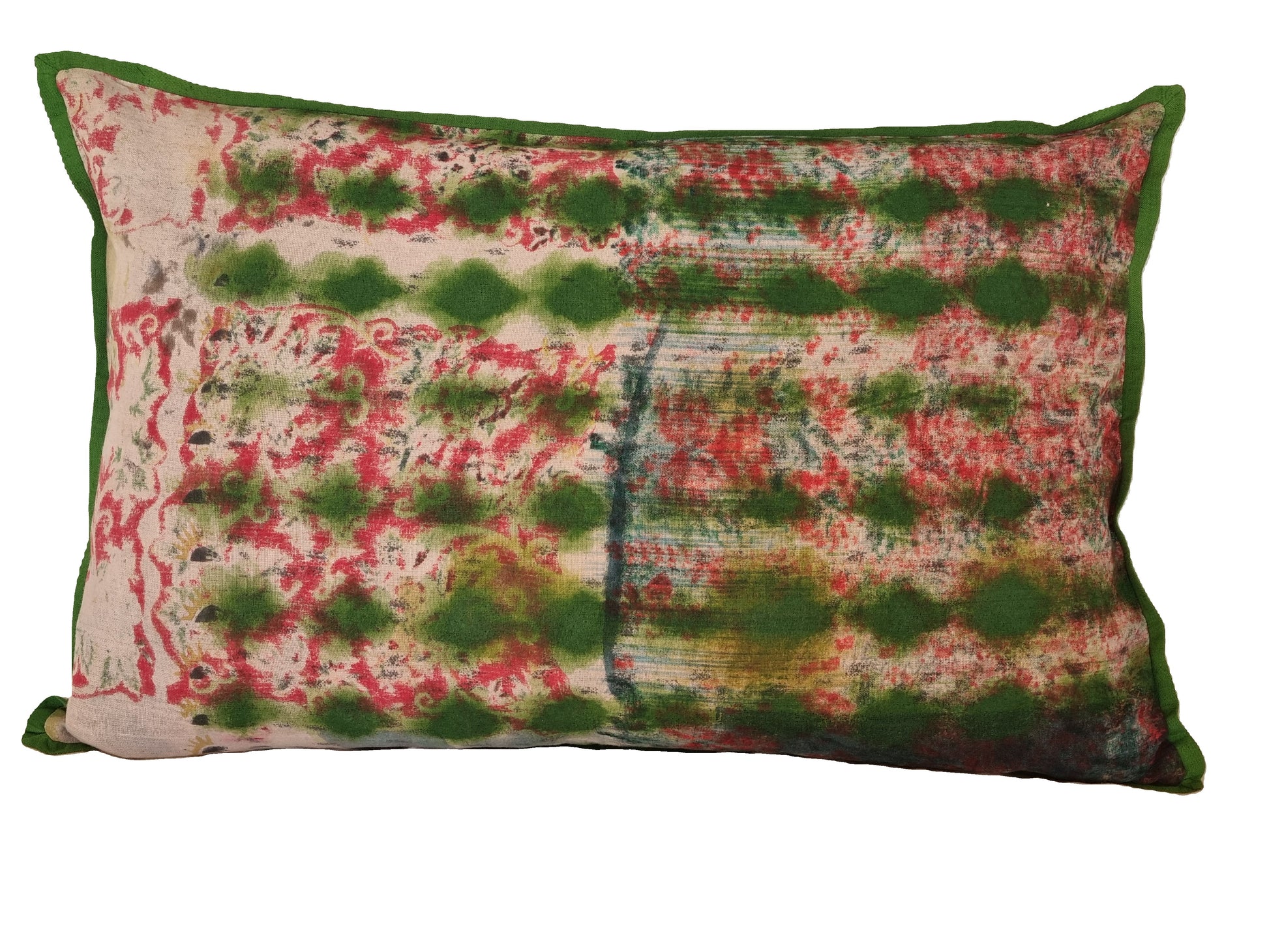 Measuring 60 x 40 cm, each cushion cover is a celebration of artisanal craft and thoughtful design. The front is crafted from 100% cotton, bearing the rich textures and tonal layers built up over years of traditional printmaking. The reverse features a soft blend of 45% cotton and 55% linen, dyed Azo-free in a deep Moss Green hue that enhances the overall design with a refined, moody finish.