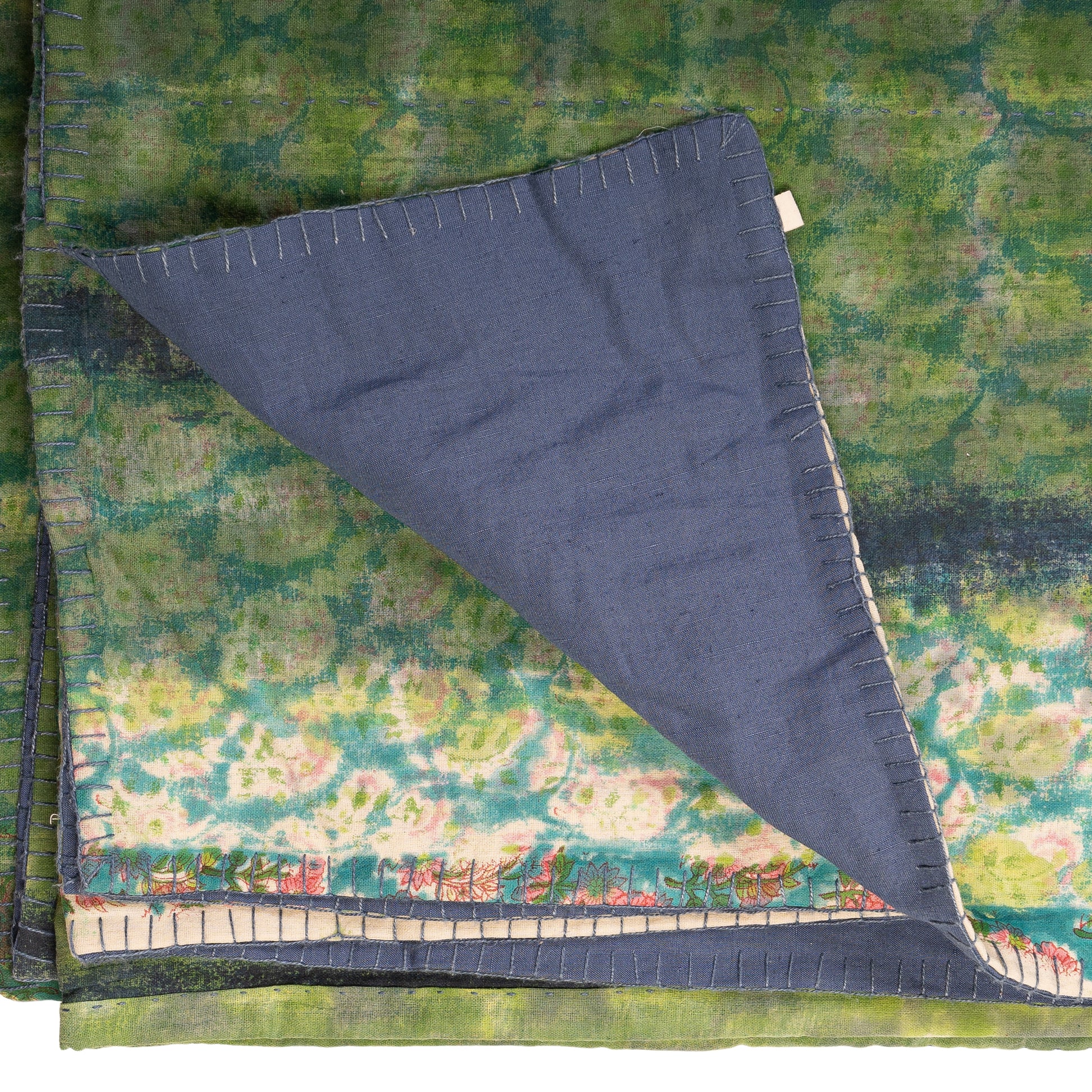 Woven with story and soul, our Kantha Doha quilts are crafted from layers of underprint cotton—rich in history and softened by time—salvaged from the traditional woodblock printing tables of Jaipur. Each cotton top bears the traces of countless prints laid down before it, forming a gently faded, painterly surface with a one-of-a-kind, timeworn beauty.