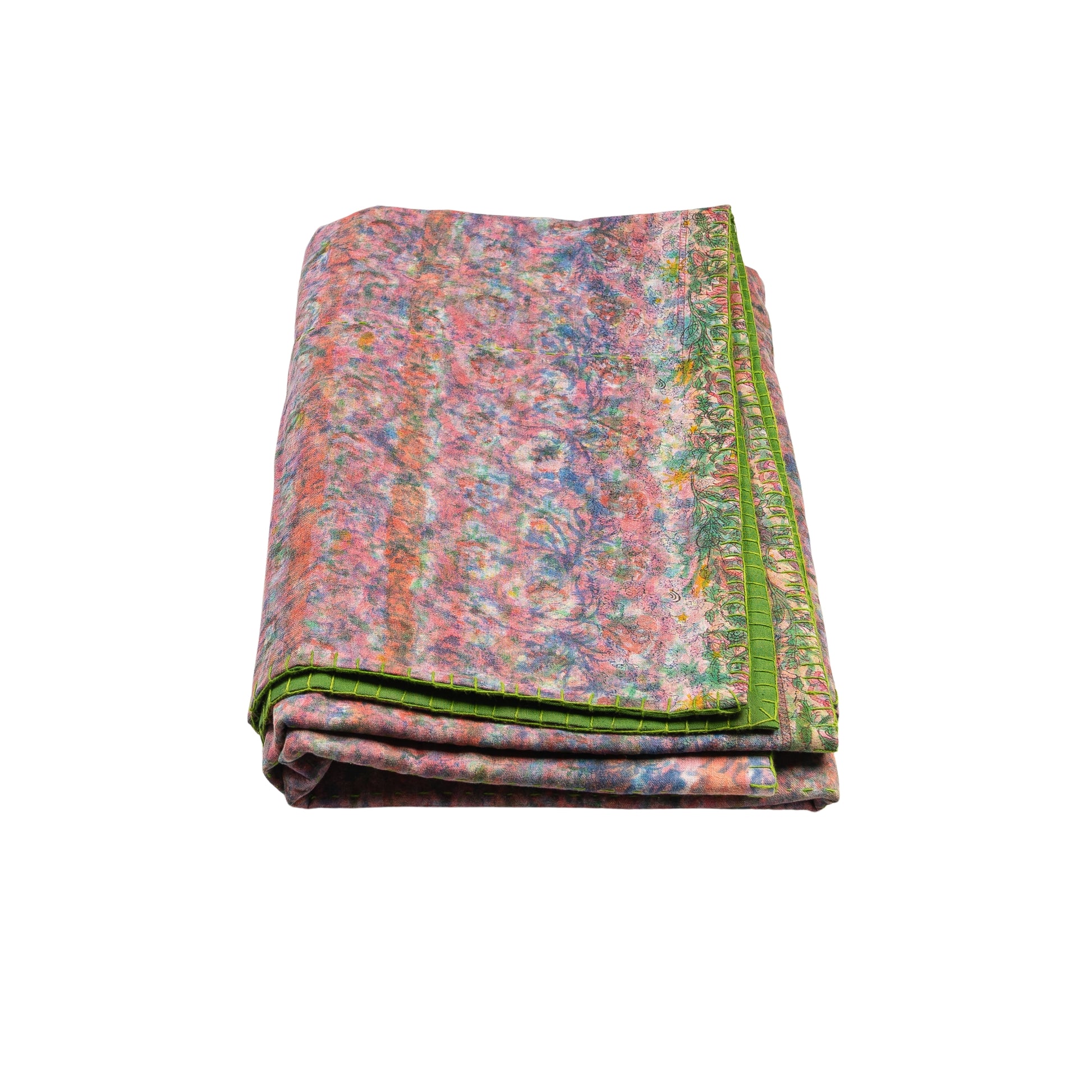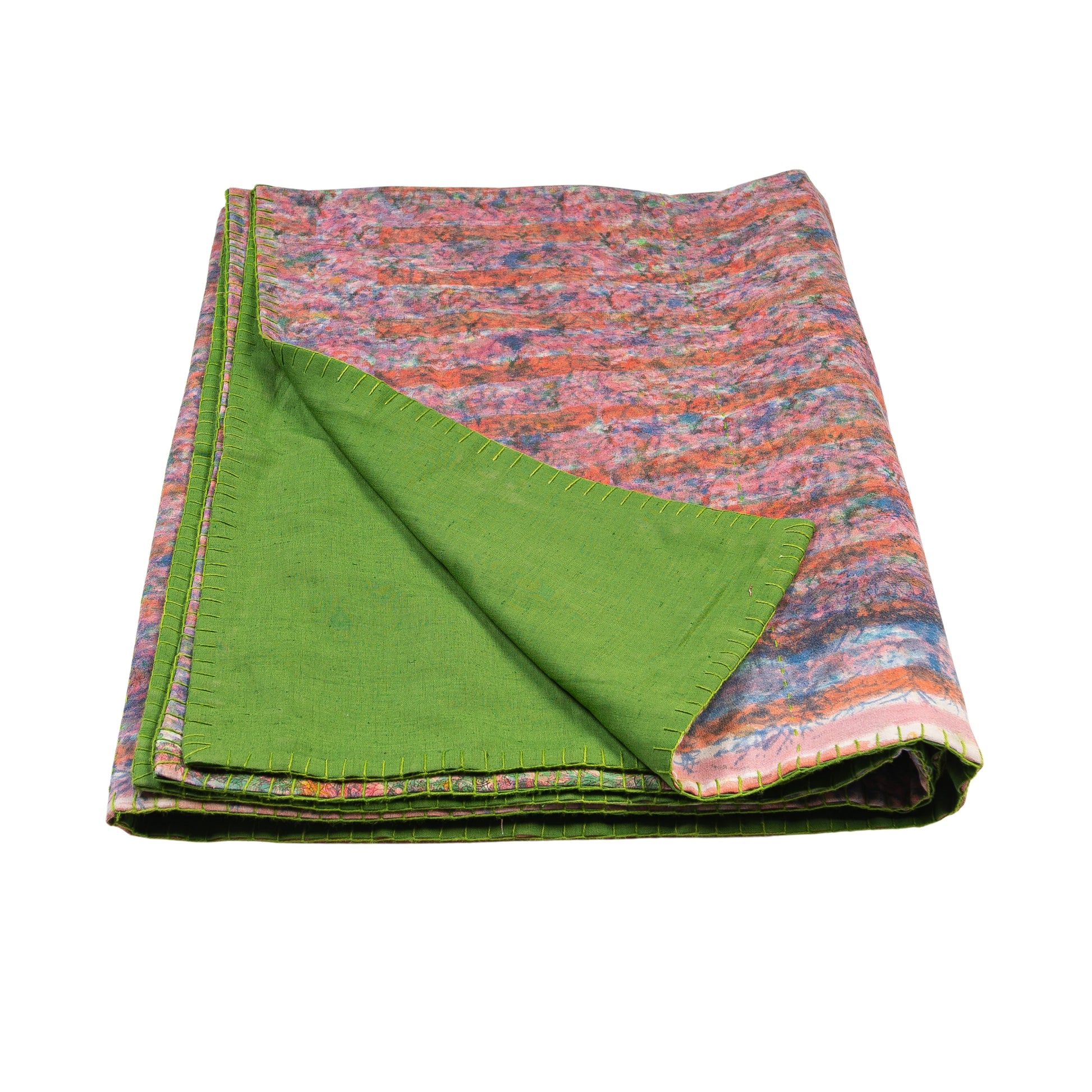Woven with story and soul, our Kantha Doha quilts are made from layers of underprint cotton—rich in history and colour—salvaged from the traditional woodblock printing tables of Jaipur. These cotton tops bear the traces of hundreds of prints gone before them, creating a softly faded, painterly surface with a unique, timeworn beauty.