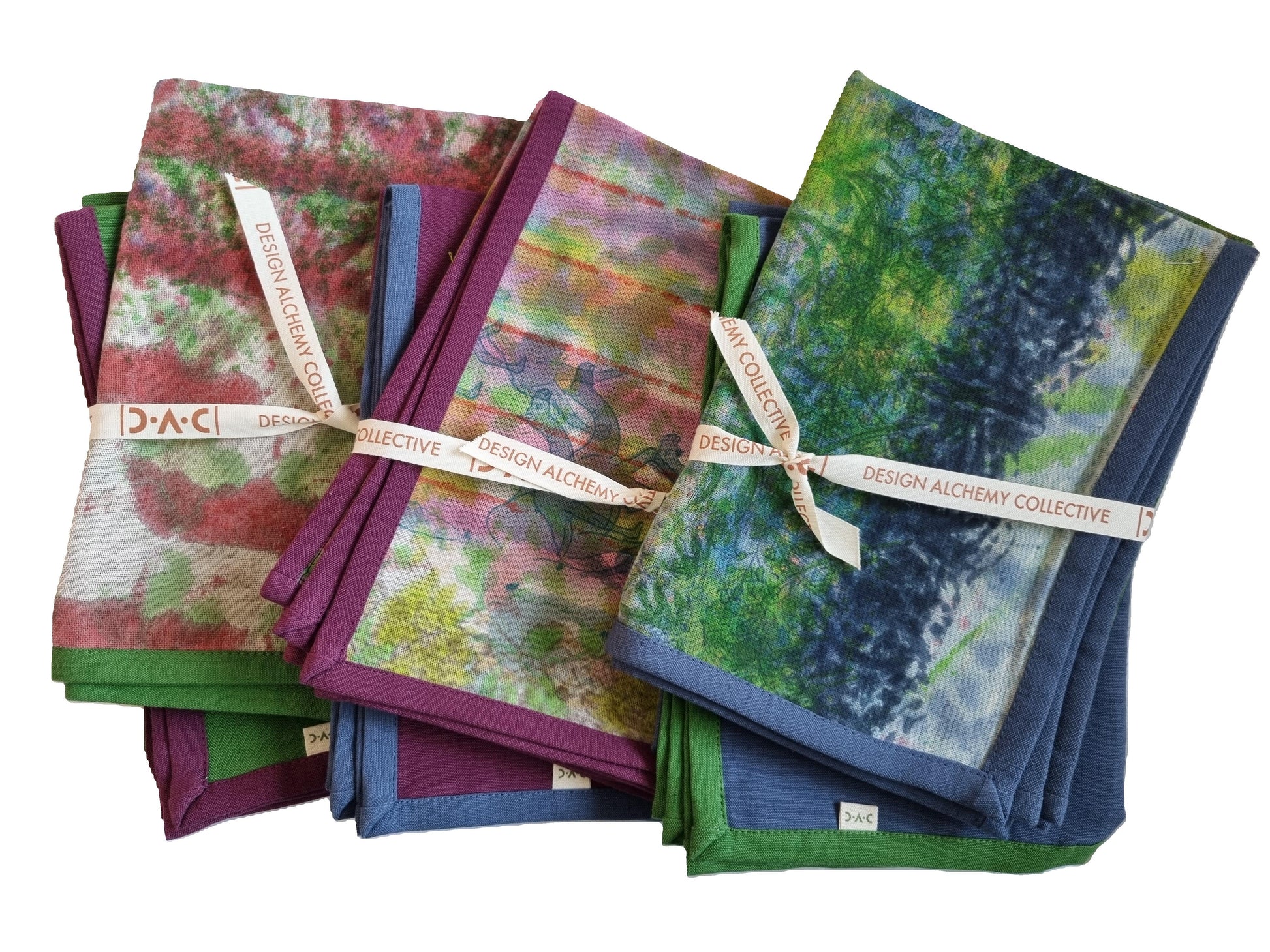 Bring a splash of art into your kitchen with our limited-edition tea towel sets, handcrafted from upcycled underprint fabrics and soft linen-cotton blends.
